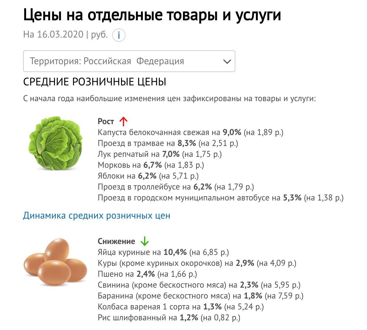 При этом нужно отметить, что рост цен на продукты ажиотажного спроса был ниже, чем на другие товары и услуги. Заметнее всего по РФ подорожали овощи (капуста белокочанная - на 9%, лук репчатый - на 7%, морковь - на 6,7%). Такой рост цен может быть сезонным фактором, обусловленным снижением запасов. Также значительно повысилась плата за проезд в городском транспорте: проезд на трамвае (на 8,3%), троллейбусе (на 6,2%) и городском муниципальном автобусе (на 5,3%). Среди возможных причин назывались рост цен на топливо, энергию и запчасти.