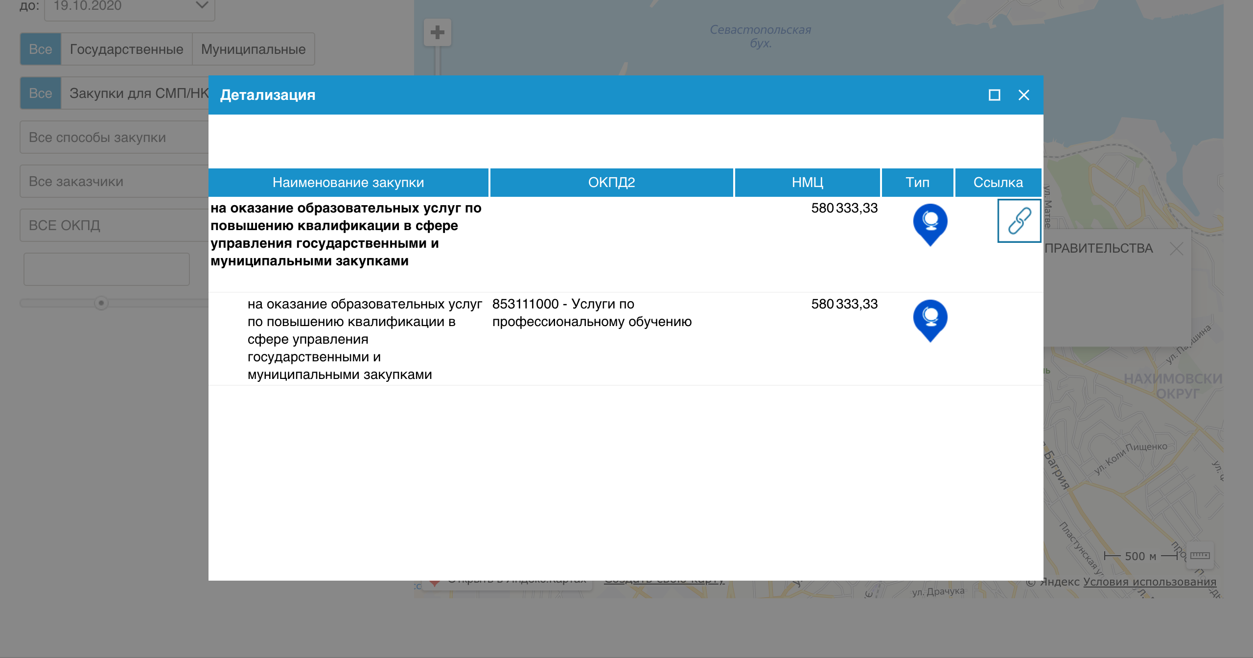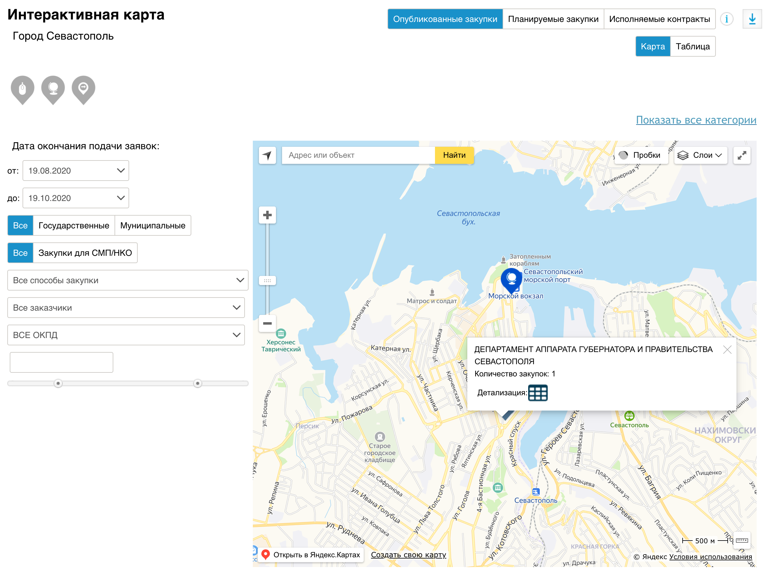 Интерактивная карта закупок г. Севастополя